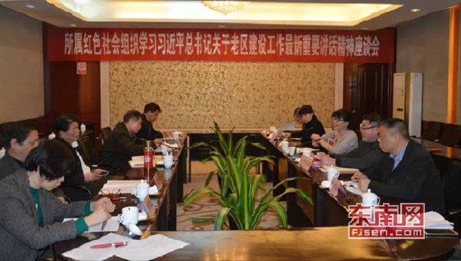 闽东红促会会长、宁德市政协原主席林鸿坚,市新四军研究会会长、宁德地区老区办原主任林邦武等市社科联所属红色社会组织负责人及市委党史和地方志研究室、市民宗局、市老区办等市直有关部门负责人围绕习近平总书记关于老区苏区建设的重要讲话精神畅谈感想体会。